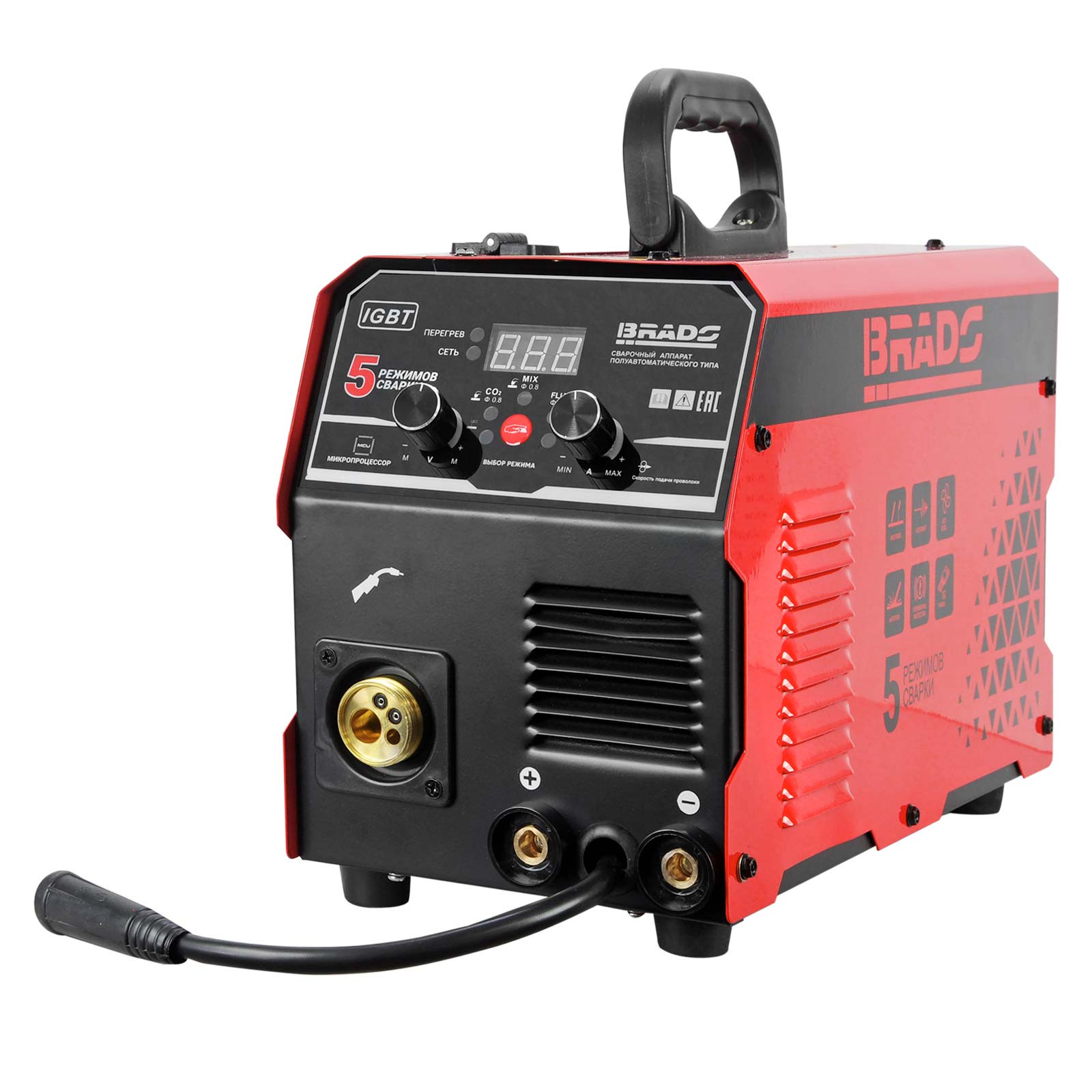 - 3-в-1 - полуавтоматическая сварка, ручная сварка электродами, cварка неплавящимся электродом;